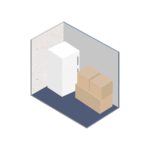 Fits furnishings of a mid-sized bedroom, including a queen-sized bed, a dresser, a TV and several small to medium-sized boxes.